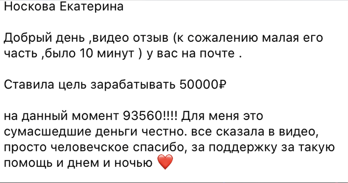 Материалы тренинга находятся на удобной платформе Геткурс. У вас будет личный кабинет где представлены уроки, а так же обратная связь. Вы можете скачать приложение и проходить обучение полностью на смартфоне